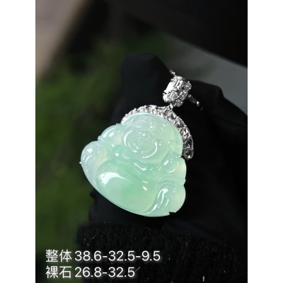 Jade pendant, 18k gold set Avalokiteskin pendant, overall: 50.3-29.1-13.4, bare stone: 37.3-26.6